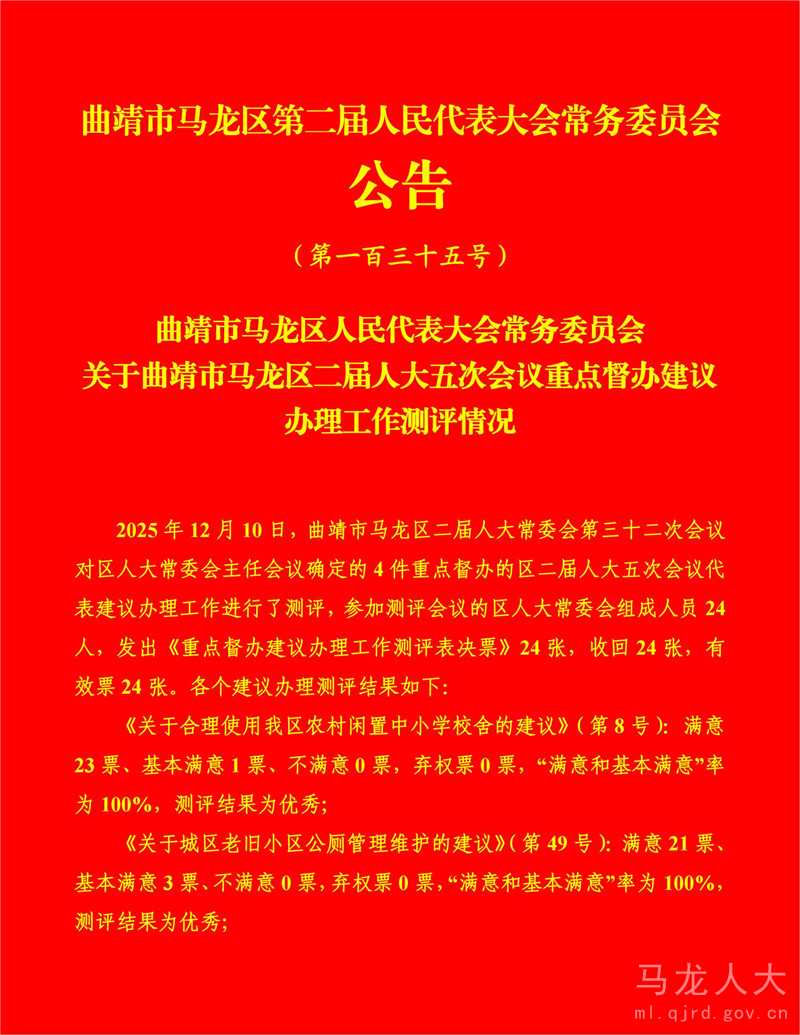 曲靖市马龙区第二届人民代表大会常务委员会公告(第一百三十五号)